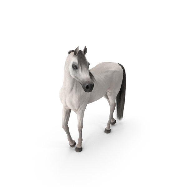 Arabian Horse White Stand Pose Fur PNG & PSD