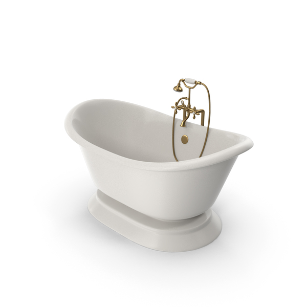 Cast Iron Double Slipper Pedestal Tub with Gold Standing Faucet PNG & PSD