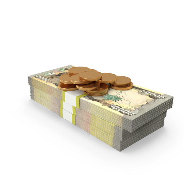 Gold Coins WIth Iraq 50000 Dinars Money Bill PNG & PSD
