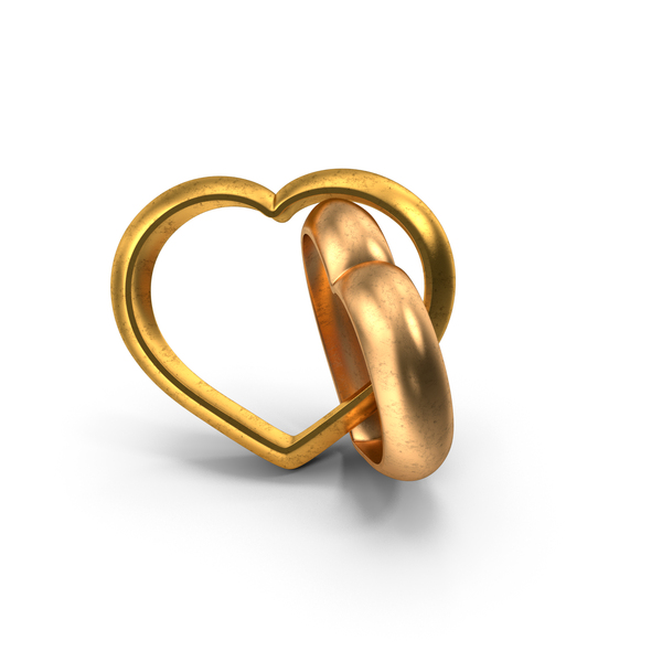 Golden Heart Shaped Wedding Rings PNG & PSD