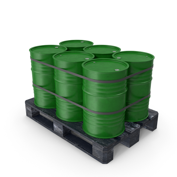Green Barrels On Dark Painted Wood Pallet PNG & PSD
