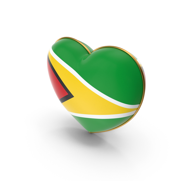 Guyana Country Flag In Heart Golden Frame PNG & PSD
