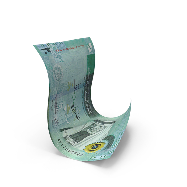 Jordan 20 Dinars Money Folded Falling Note PNG & PSD