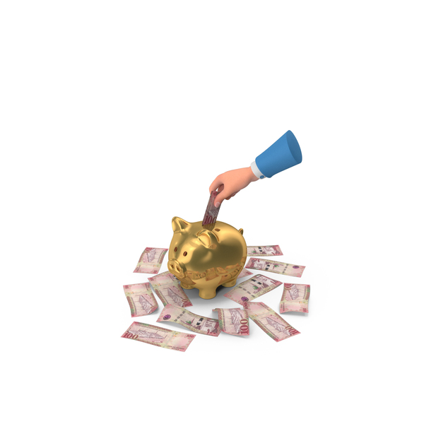 Saudi 100 Riyals Save Hand Hold Gold Piggy Bank PNG & PSD