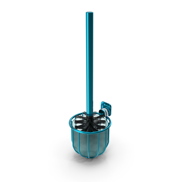 Silver Effect Wall Mounted Toilet Brush Holder With Brush And Hook Blue PNG & PSD