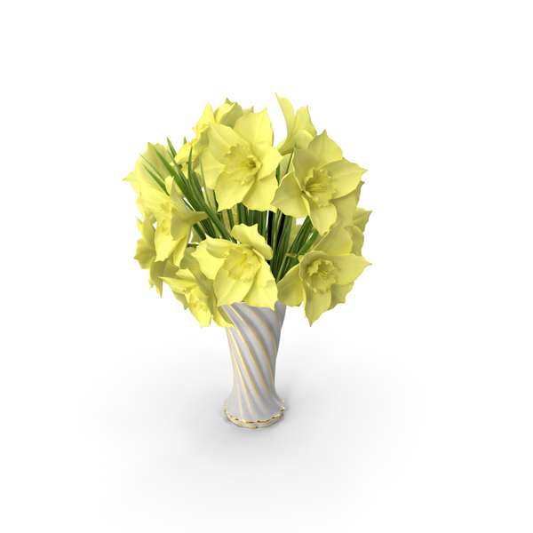 Yellow Narcissus Bouquet In Vase PNG & PSD