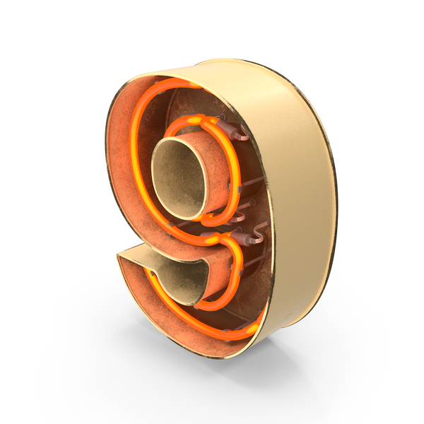 Yellow Vintage Neon Digit 9 PNG & PSD